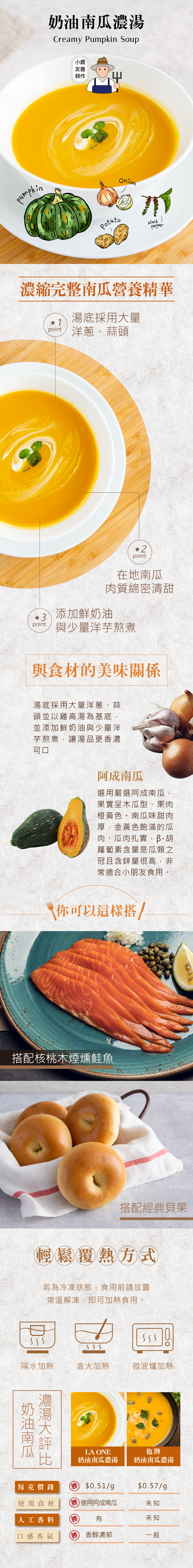 ★由於不同溫層商品無法合併結帳,您可參考每個這款濃湯口感如絲絨般滑順,每一口都能嚐到南瓜甜味與濃郁奶香。